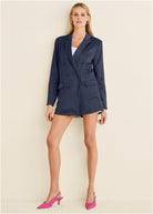 This blazer with double-breasted tailoring is an essential layer all year round. Polished yet effortless thanks to the oversize fit, it goes over just about anything—a dress, jeans, a tank and cutoff shorts—you name it, it works. Done in our EffortLuxe fabric it has a gorgeous drape, slight sheen and a hint of stretch for comfort (plus it doesn’t wrinkle!). * Available in plus sizes * Button-up front * Double breasted * Two front flap pockets * Long sleeve * Three-button cuffs * Lined body * Fabric has light stretch * EffortLuxe (Poly/spandex. Imported)