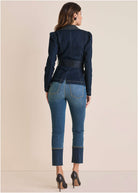 Puff Shoulder Denim Blazer - Dark Wash