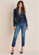 This Puff Shoulder Denim Blazer is so good, you'll neve want to take it off. With puff sleeve detail, bold contrast stitching, and a flattering belt tie at the waist, this blazer levels up any look. The long sleeves keep it chic and versatile for any season. Wear it buttoned up like a top with your favorite denim, or layer it over a tank for extra edge. Either way, it’s an instant outfit-maker.