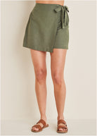 Wrap Linen Skort - Olive