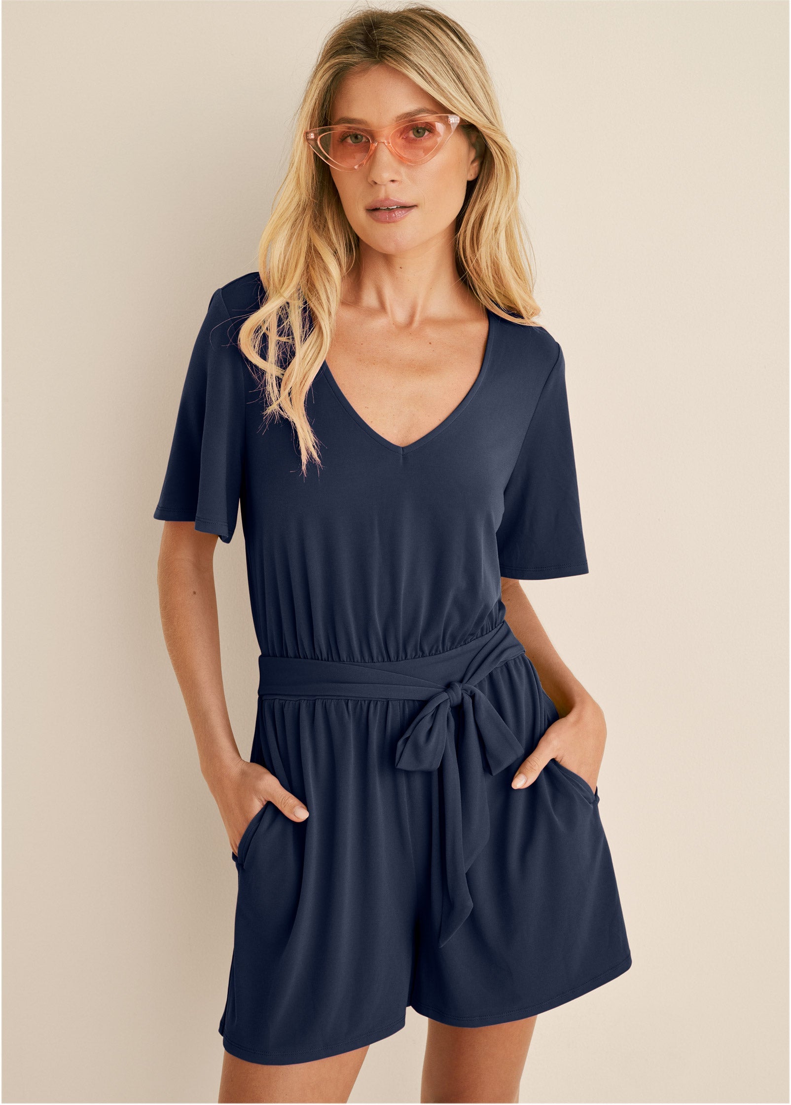 Long-Sleeve Skort Romper - Mystic Jacobean