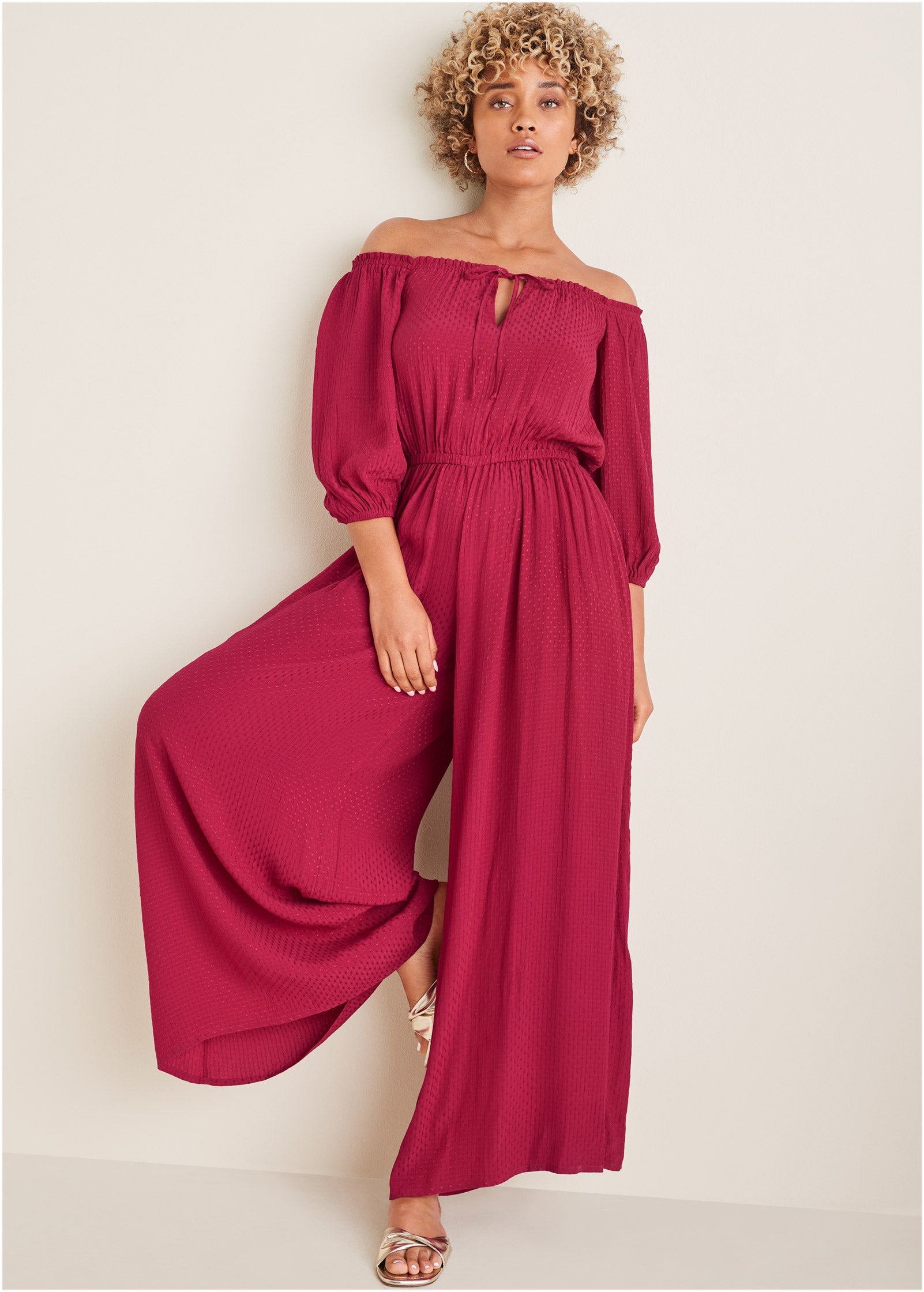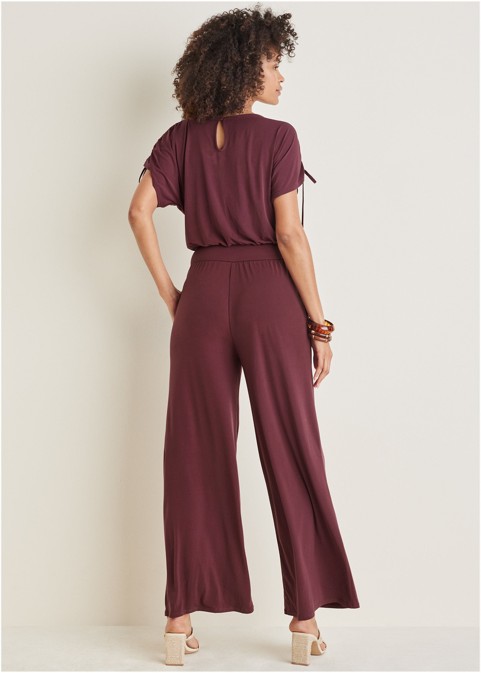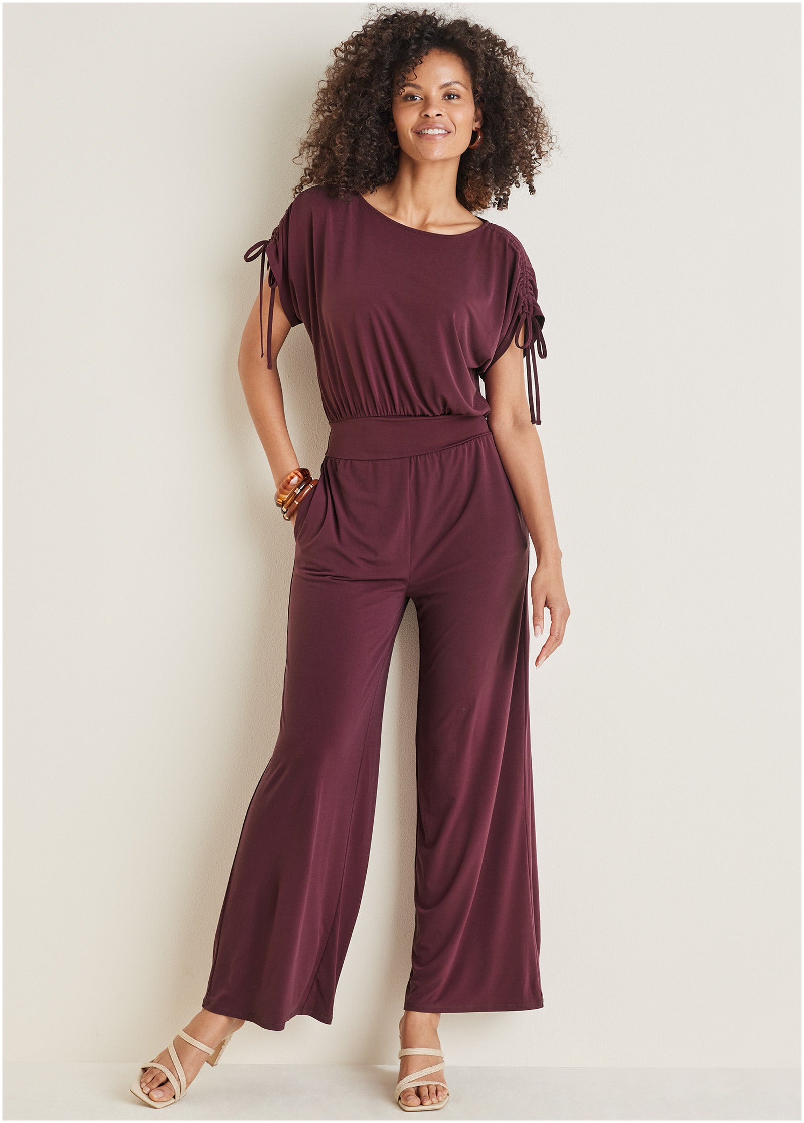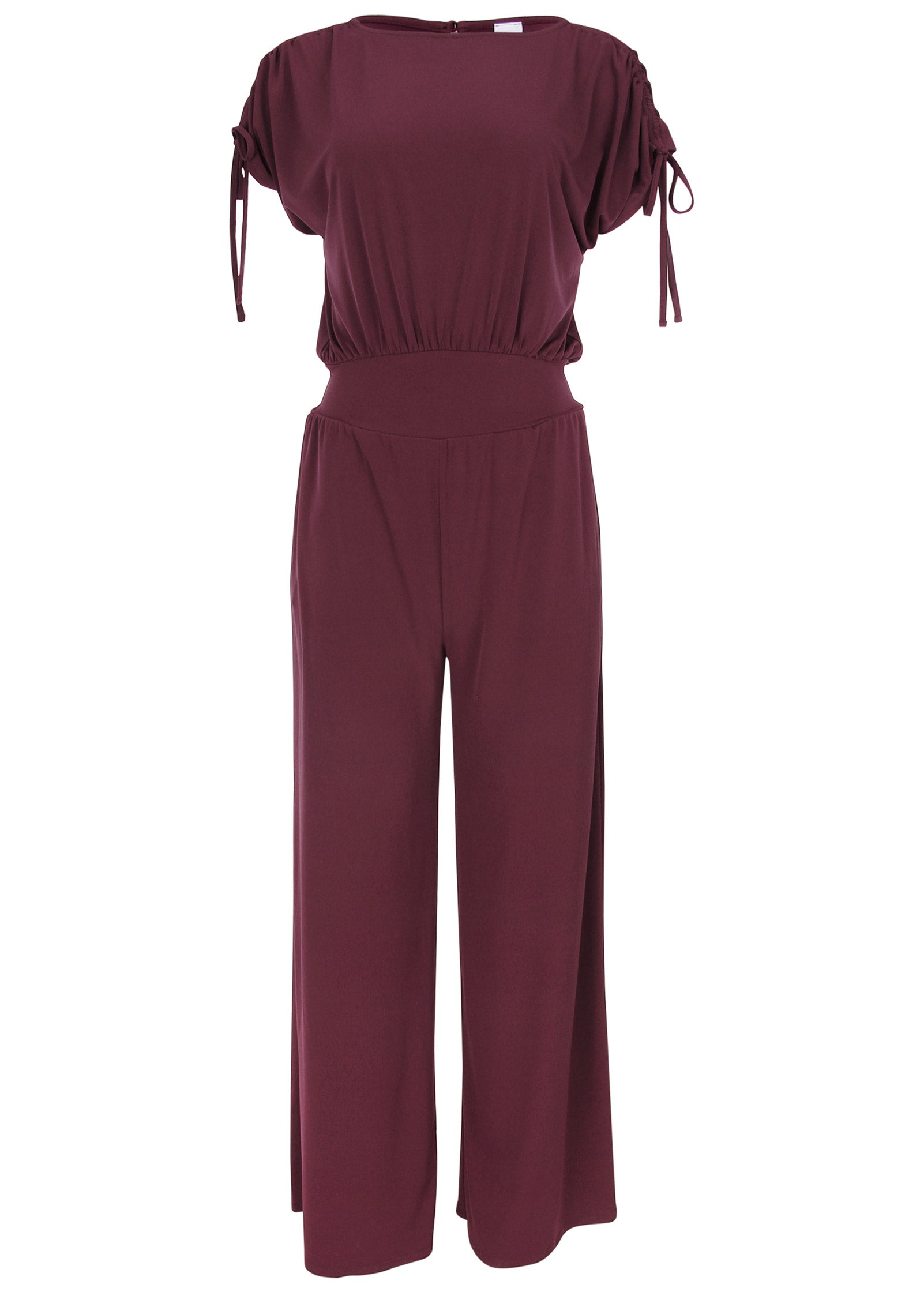 Shoulder Detail Wide Leg Jumpsuit - Wine