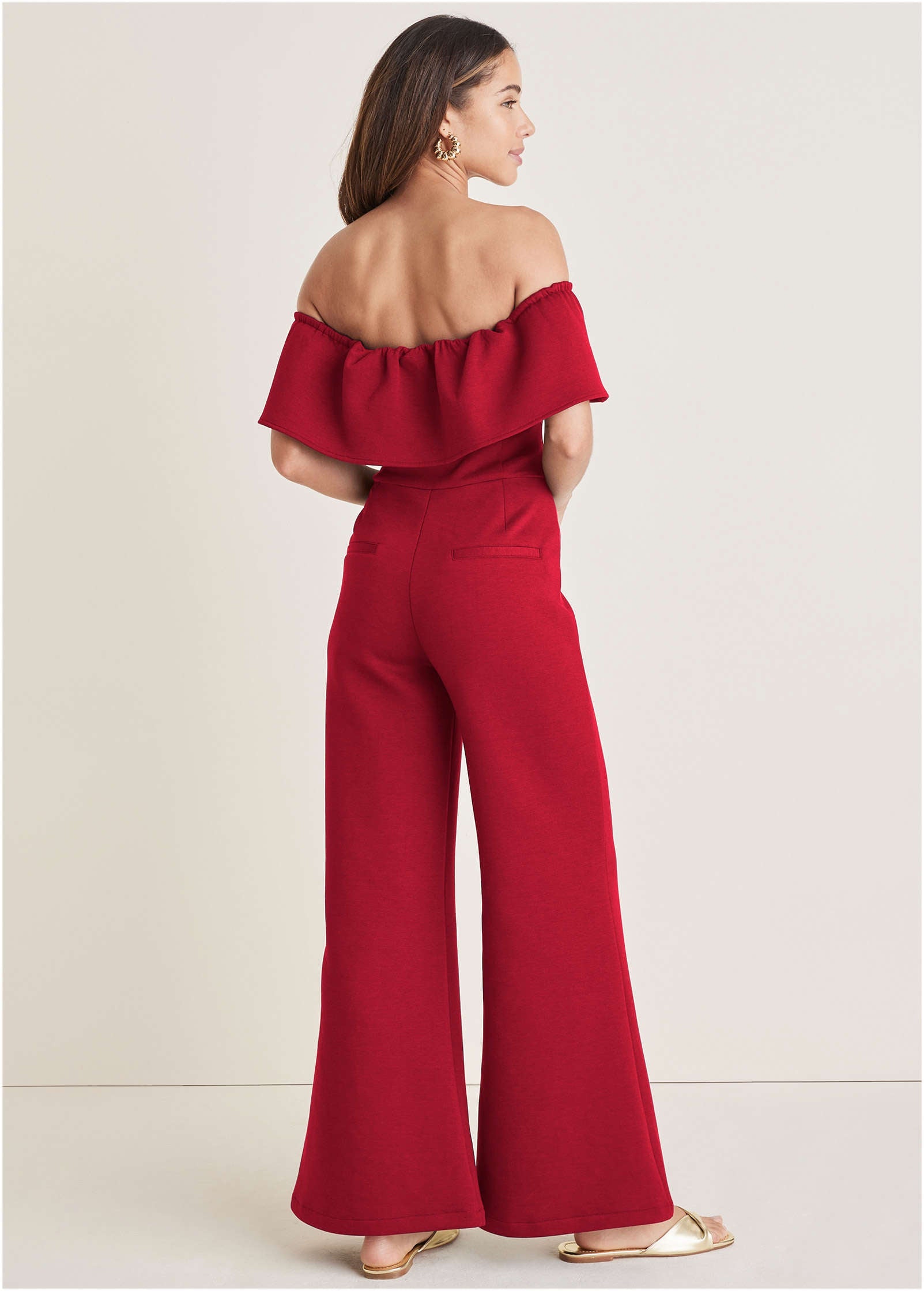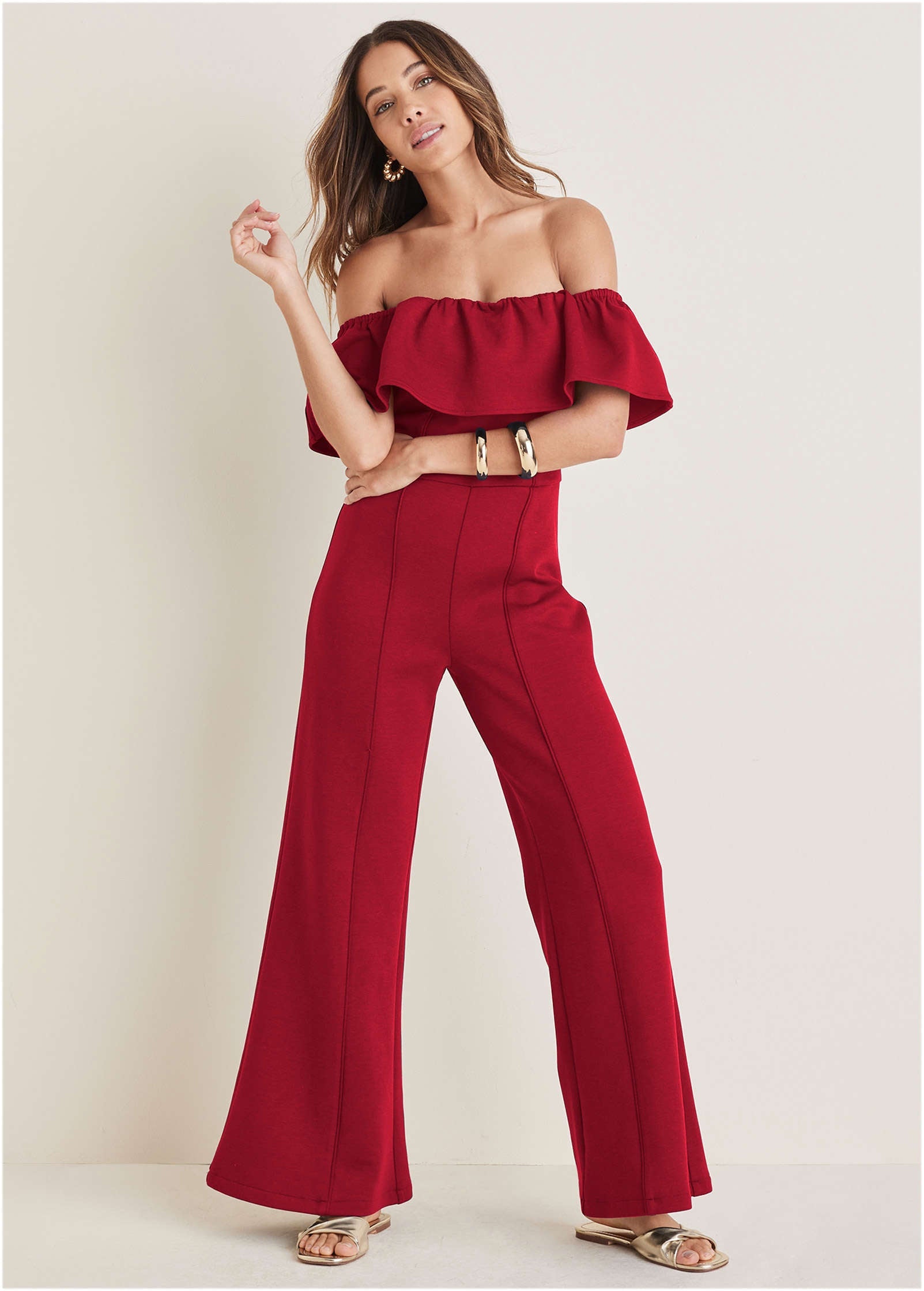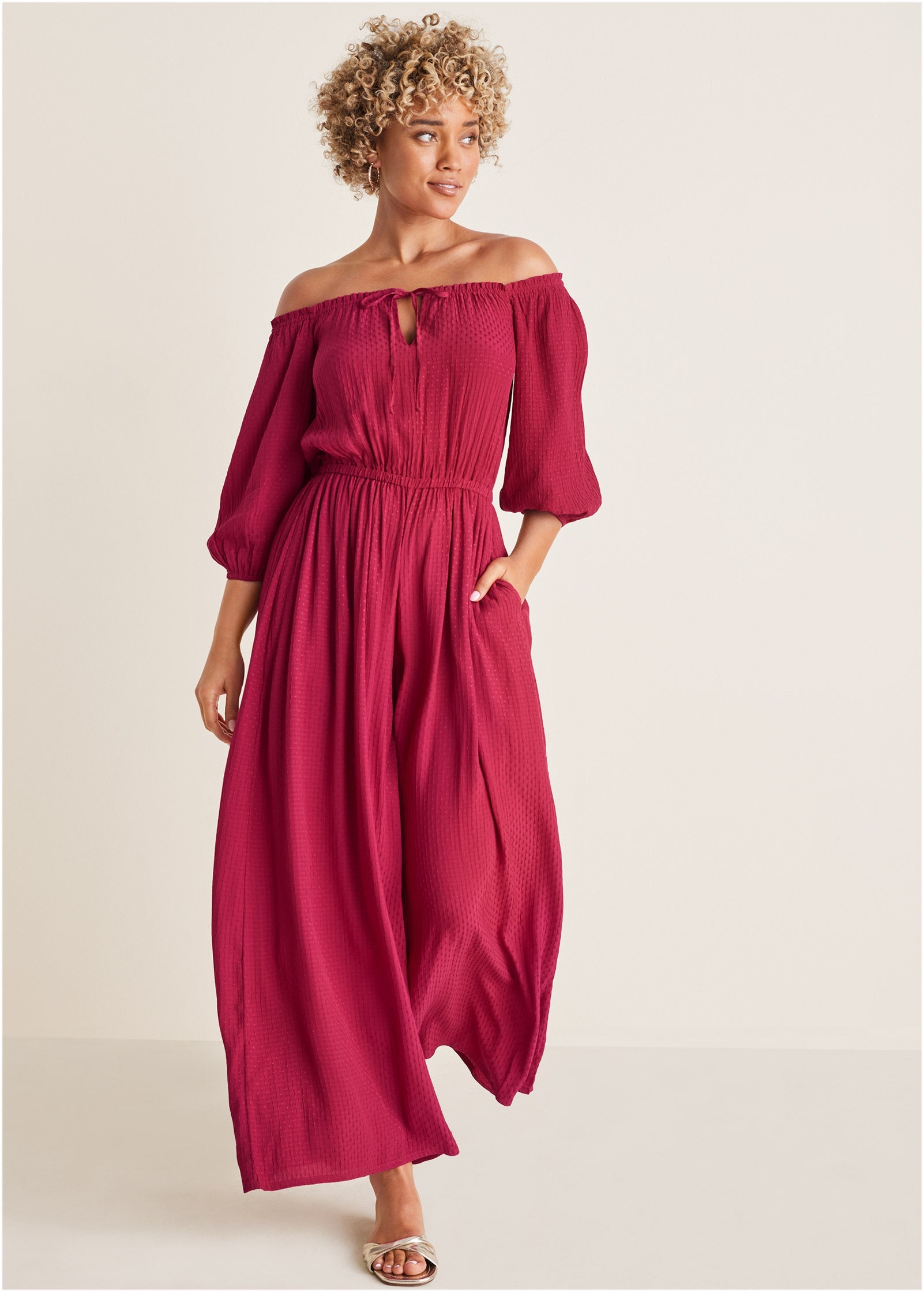 Shoulder Detail Wide Leg Jumpsuit - Wine