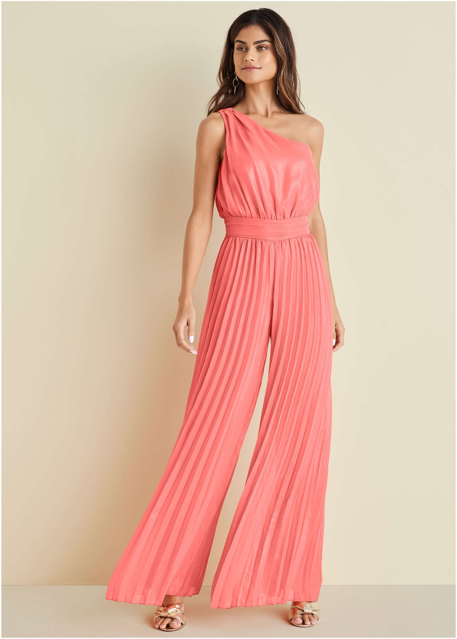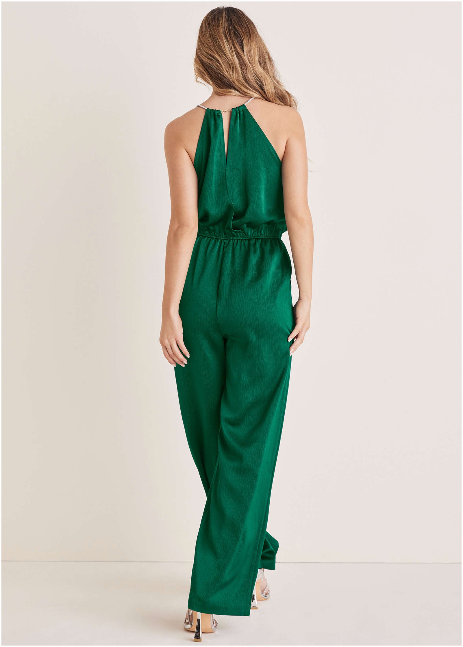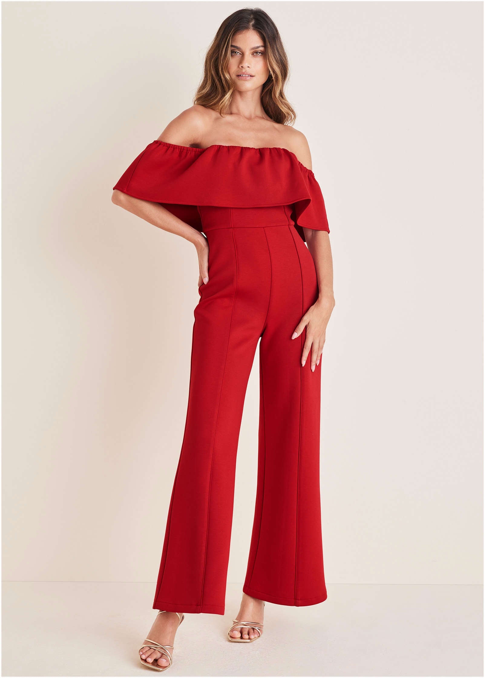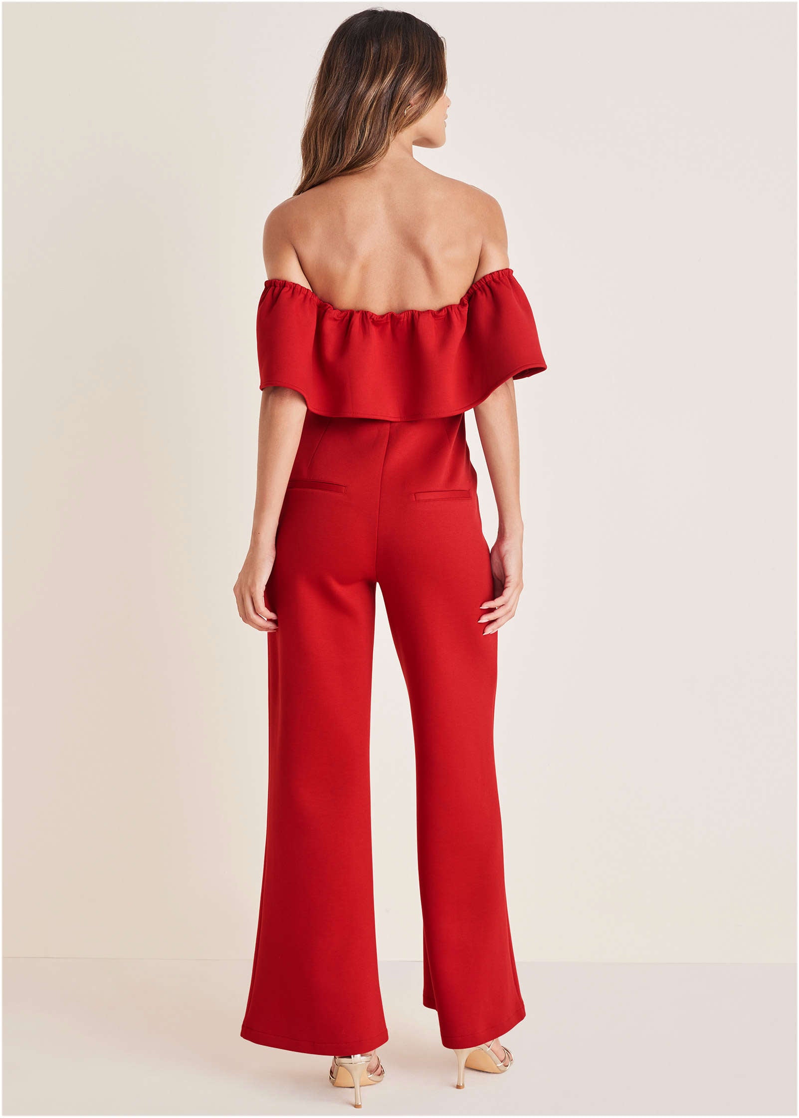 Shoulder Detail Wide Leg Jumpsuit - Wine