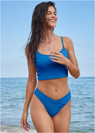 Our SuperRib Swim Crop Top is the cool girl on the beach. She's effortless yet always on trend, and never fails to surprise. That's exactly the vibe you'll be giving off when you rock this sporty cropped bikini. Done in our SuperRib fabric, its textured yet smooth thanks to wide ribbing, and has athletic stretch for comfort.