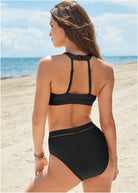 Complete with sheer trim around the waist, this high-rise brief-inspired bottom brings chic style beach-side! Moderate rear coverage is just modest enough for family vacations, though the intricate detailing reveals a touch of allure. Pair with the coordinating top for a complete day-in-the-sun look.