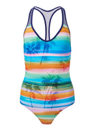 For lying on the sand or swimming in the sea, this one-piece bathing suit is ready to go on vacation with you. The sporty racerback styling adds support to the low scooping neckline, making it ready for a day of activities with a moderate back for sun-ready coverage.