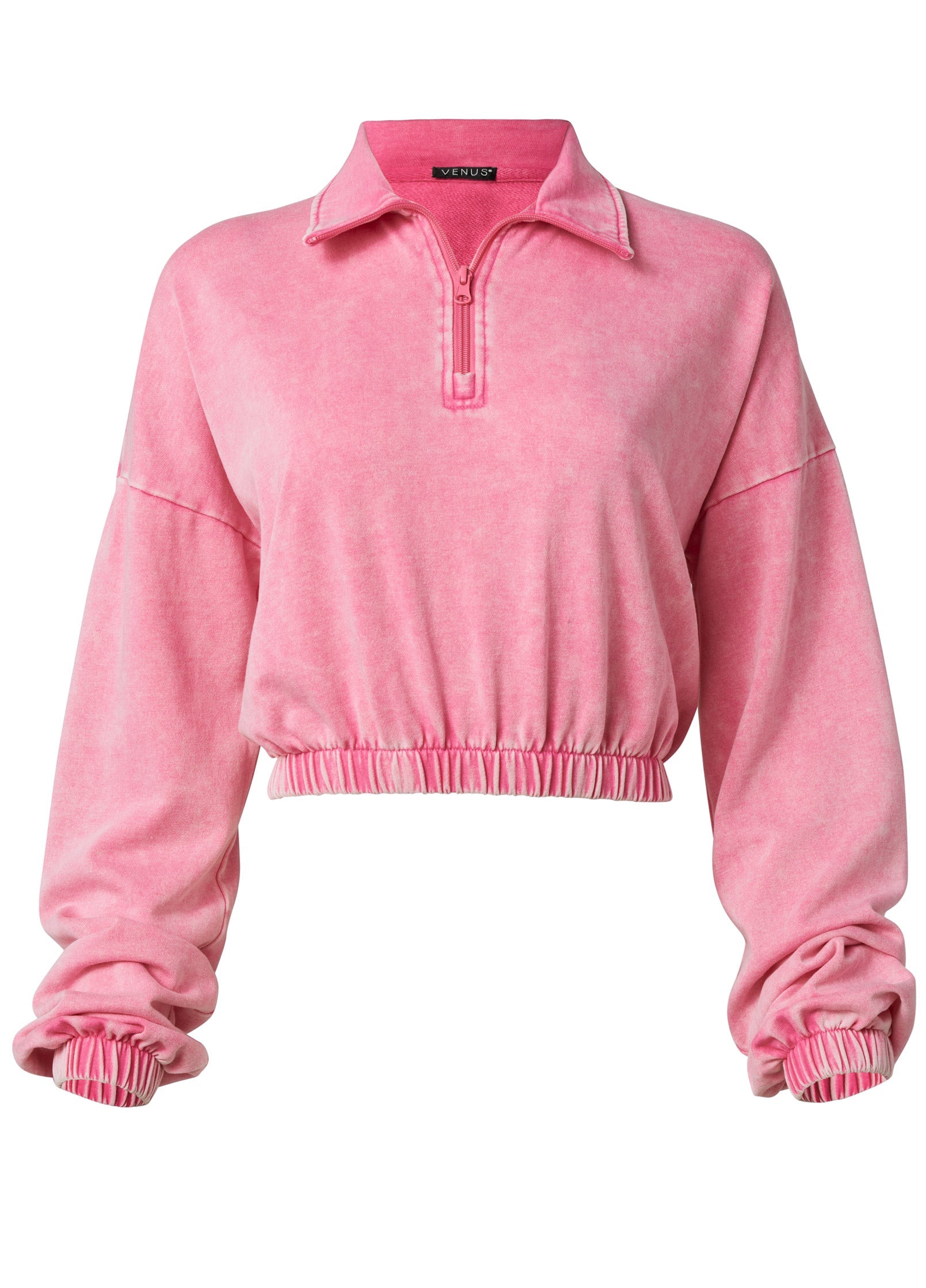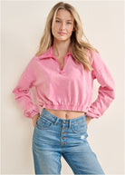 Comfy French terry fabric combines with a loose cropped fit to define the ready-for-anything feel of this sweatshirt! With its half-zip neckline, elastic hem and slouchy long sleeves, this pullover is easy to wear with lounge bottoms or denim on your day out. The mineral wash adds a cool, effortless vibe.