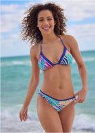 Diamond stitch detailing along the front waist of these low-rise bikini bottoms make them a stand-out pair! Sitting low across the hips for a moderate-coverage look, you're ready to soak up the sunshine as soon as you pull these on. * Print placement may vary * Moderate coverage * Low rise * Diamond stitching across front * Domestic or import of poly/spandex tricot