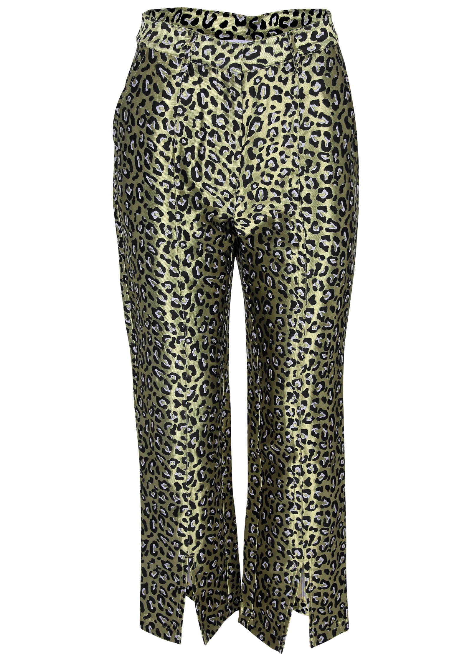 These aren't your usual holiday metallics. No, these gold pants are tailored to a T for a polished look and feature leopard-print jacquard for a fierce and shiny spin. With a slit at the hem, this pair is elegant enough for the office yet playful enough to make it to midnight to see the ball drop. Just add heels, a bold top and the matching jacket—if that's your vibe. * Available in petite sizes * Inseam: 27" missy; 24" petite * Zipper, hook & eye closures * Side and back pockets * Front slit at hem * Unlined * Polyester. Imported