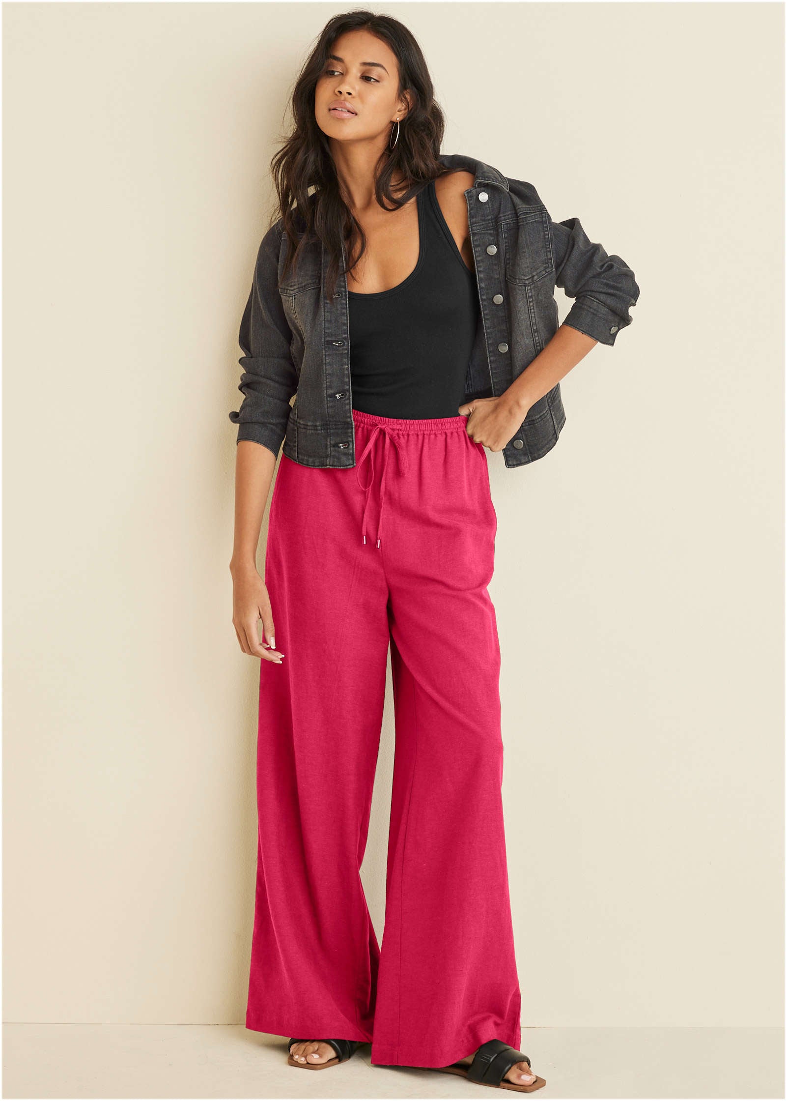 When the occasion calls for something a little dressier than jeans, keep your look structured and chic with easy-to-wear wide leg pants and trousers from VENUS. Our trendy wide leg pants come in several options, from laid back smocked pull-on pants to belted trouser suiting pants. Mix and match casual tops and structured shirts, because our trousers and suiting pants look great dressed up or down.