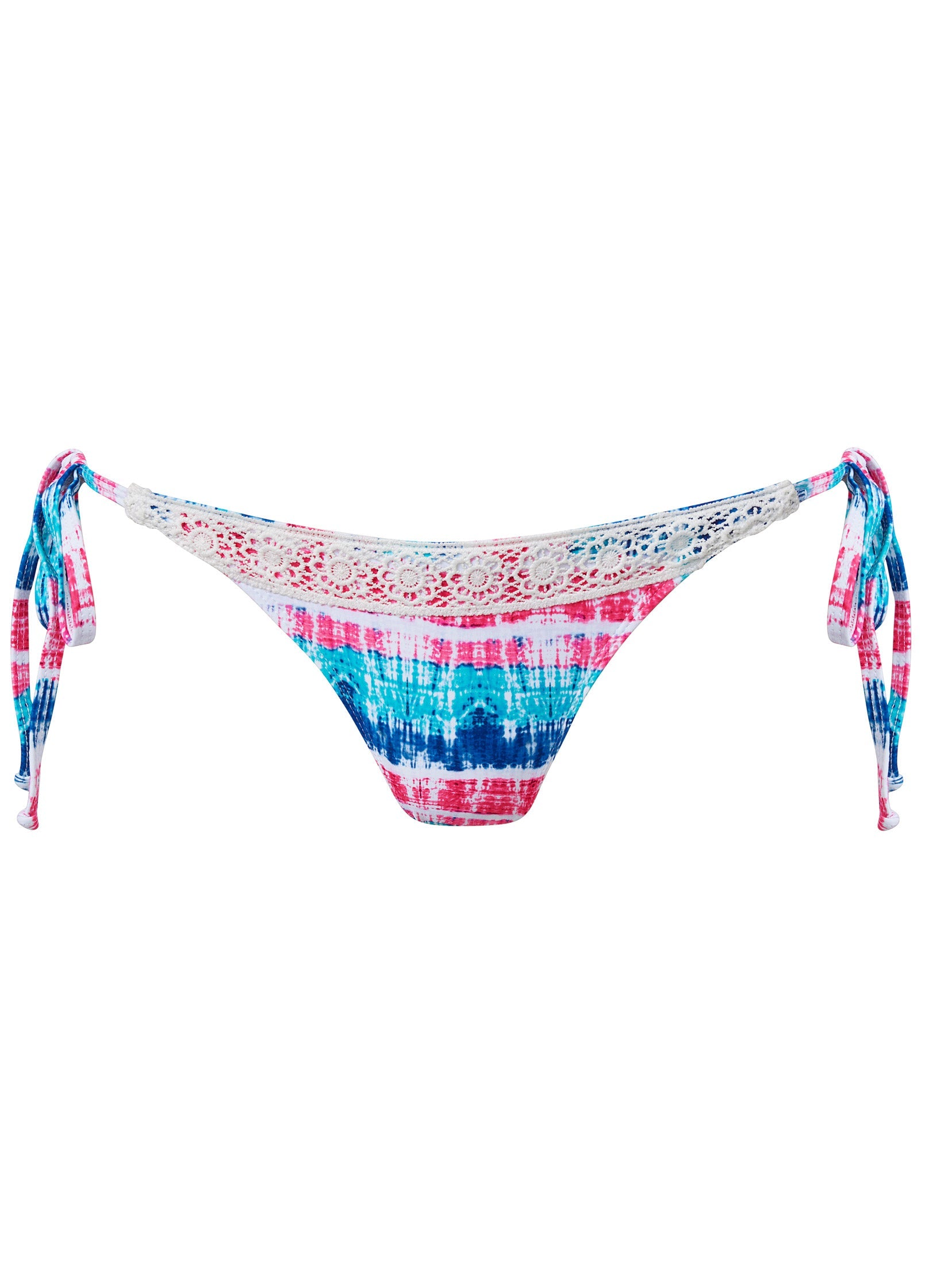 Tie-side bottoms are a swim staple, and this pair pretties up the familiar design with a little lace. Lacy crochet trim sits along the front edge before tying at the sides in an adjustable fit. Moderate coverage keeps these just modest enough for beach day with a sexy edge.