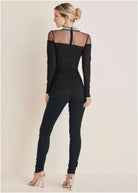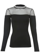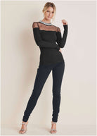 Put your jewelry away because this top comes with built in bling! Shimmering sequins, beads and rhinestones deck out the collar of this long-sleeve top, standing in as the ultimate statement necklace. But that's not the only thing drawing attention up: sheer mesh fabric at the décolletage adds a spicy element to this glam piece. Paired with sleek black denim or faux-leather bottoms, this top wows. * Sizes: XS (2), S (4-6), M (8-10), L (12-14), XL (16) * Plus sizes: 1X (18-20), 2X (22-24), 3X (26-28) * Long sleeves * Sequin, bead and rhinestone embellishment * Rayon/nylon/spandex/polyester. Imported