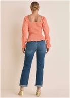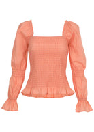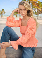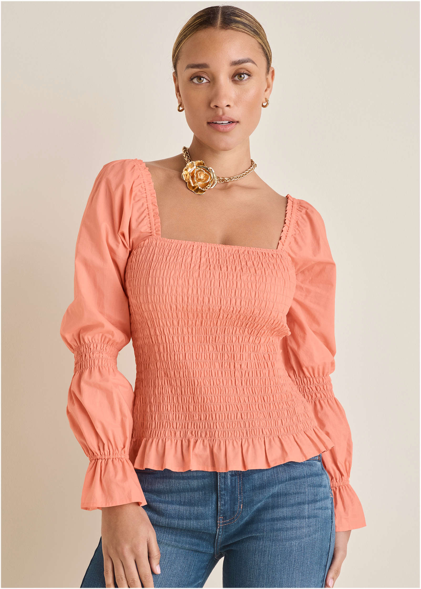 When the beach breeze gets a little too chilly, this top is the perfect remedy. The square neckline and smocked bodice show off your shape, even as the long, puffed sleeves keep your arms covered. Add in a ruffle hem detail, and you'll find yourself reaching for this top whenever you're ready to flirt.