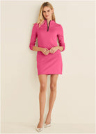 This modern mini dress has a sporty vibe with a mock neck and quarter-zip front. It's cut close to the body in an almost-A-line shape, skimming over your figure to create a clean silhouette. Done in our Ponte Perfect fabric, it looks refined, but feels relaxed thanks to low-key stretch that's ultra comfy and made to flatter.