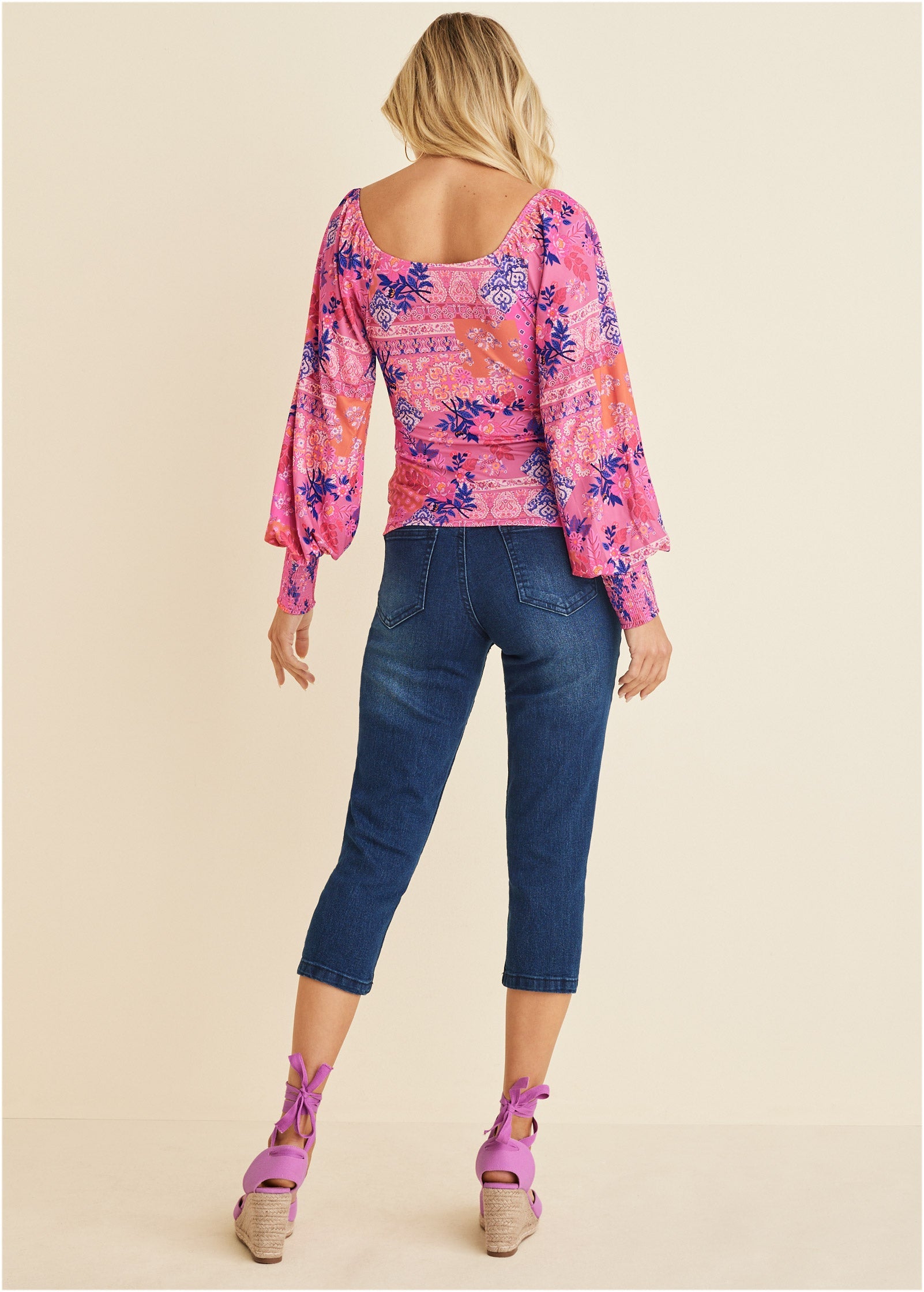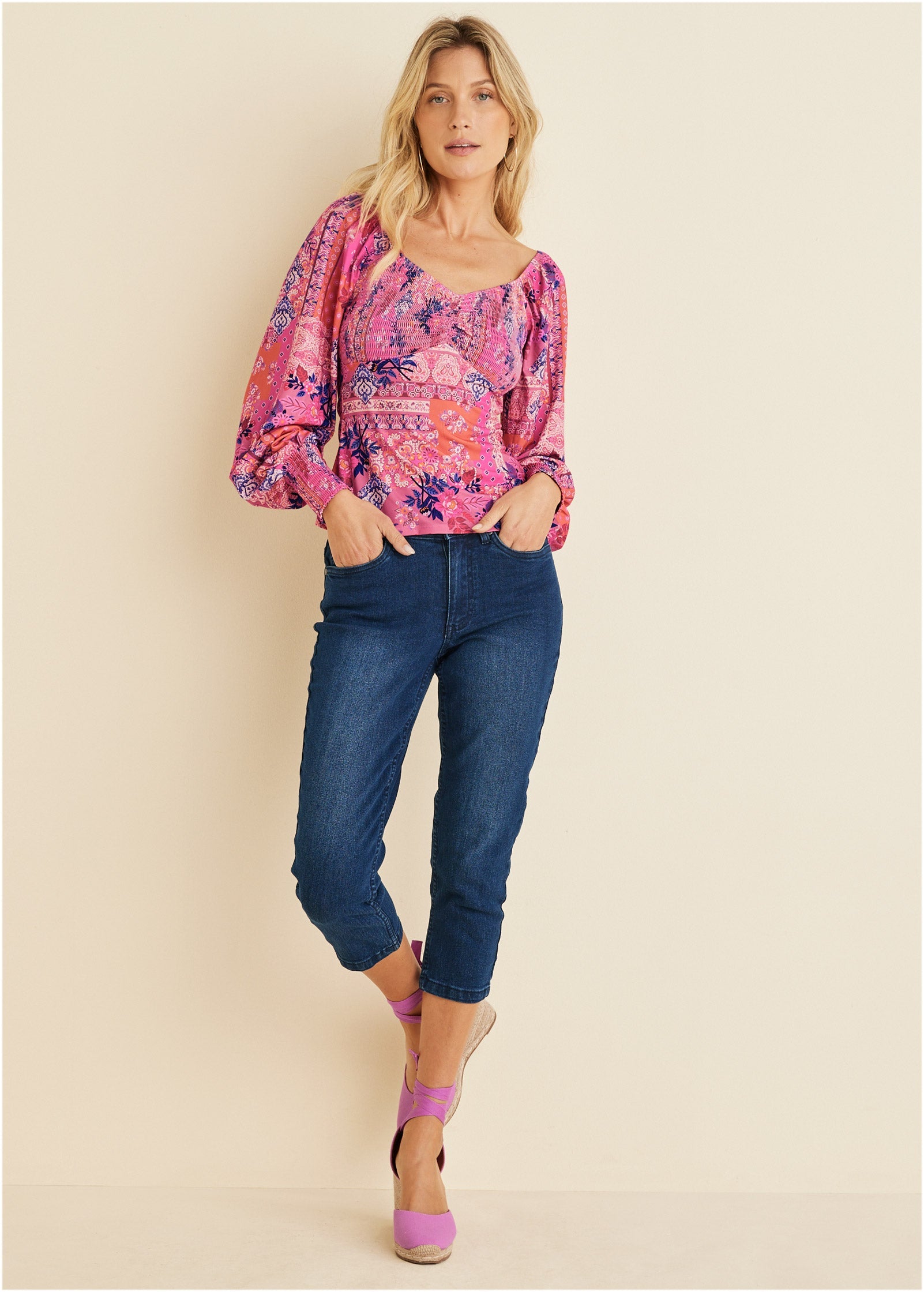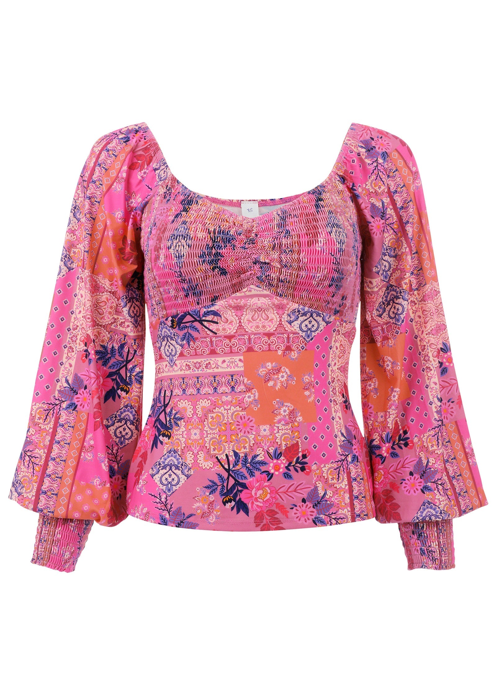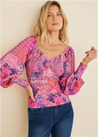 Fact: two good things are better than one, like paisley and floral prints together. Vibrant colors double down on the vivid mixed print, adding a mood-boosting pop of energy. From the smocked details to the bold balloon sleeves, you won't be able to choose just one favorite element of this top. * Sizes: XS (2), S (4-6), M (8-10), L (12-14), XL (16) * Plus sizes: 1X (18-20), 2X (22-24), 3X (26-28) * Sweetheart neckline * Smocked bust * Balloon sleeves * Poly/elastane. Imported