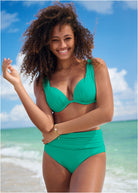 * Full skirt coverage cinches up to ruched waist with moderate rear