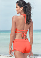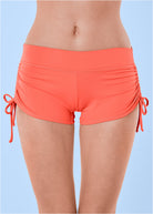 These fully lined swim shorts feature adjustable ties on each side so you control the amount of coverage. The waistband sits just below the waist for a comfortable fit.