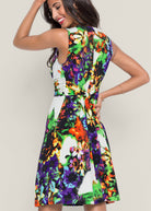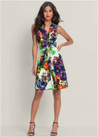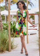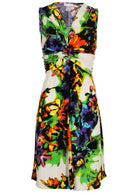 "Ooh"s" and "ahh"s will fill the air when you stroll up in this intense V-neck style! It's easy to see why-- when you're decked out in brilliant florals from neck to knee, you're going to make an impression. As an added bonus, the front twist detail plays up your figure to its most stunning potential.