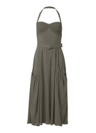 Belted Halter Midi Dress - Olive