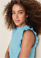 Day to night, this ruffle mini dress does it all! The simple silhouette gets a femme upgrade with ruffles along the mock neckline and arms. Done in 100% cotton, it's the lightweight spring-to-summer dress you need in your closet (and, thanks to its versatility, your suitcase). Wear it with your favorite wedges or dress it down with sneakers for a one-and-done look.