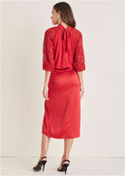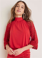 Lace Sleeve Blouse - Equestrian Red