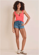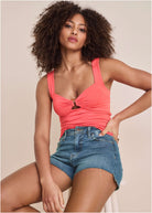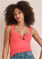 Who says a layering piece can't be a little spicy? This form-fitting sleeveless top features a keyhole detail near the neckline, offering a peek of skin. Layer it under a cardigan or blazer for breezy days or wear it solo with shorts for a head-turning look.