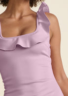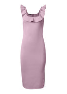 Ruffle Neck Midi Dress - Light Purple