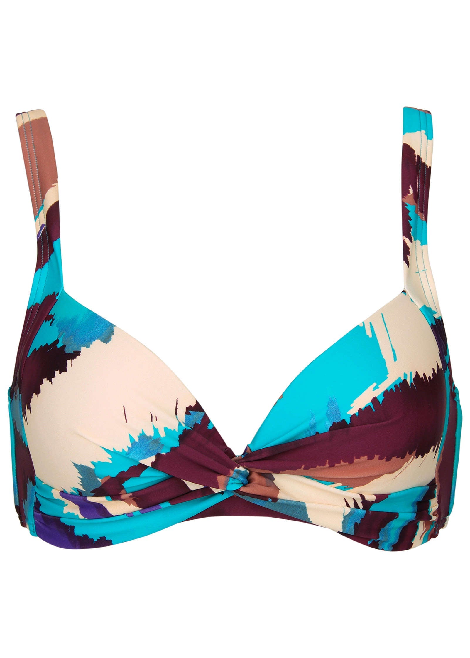 Give your beach-day bikini a twist in this shoulder-strap top that flatters. Gathers that span from the center twist work with modesty cups to shape and smooth out the silhouette. The back slider strap adjusts for your ideal fit, assuring comfort for all-day sunbathing.