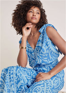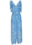 Tie-Strap Wide Leg Jumpsuit - Blue Allover Spring Paisley
