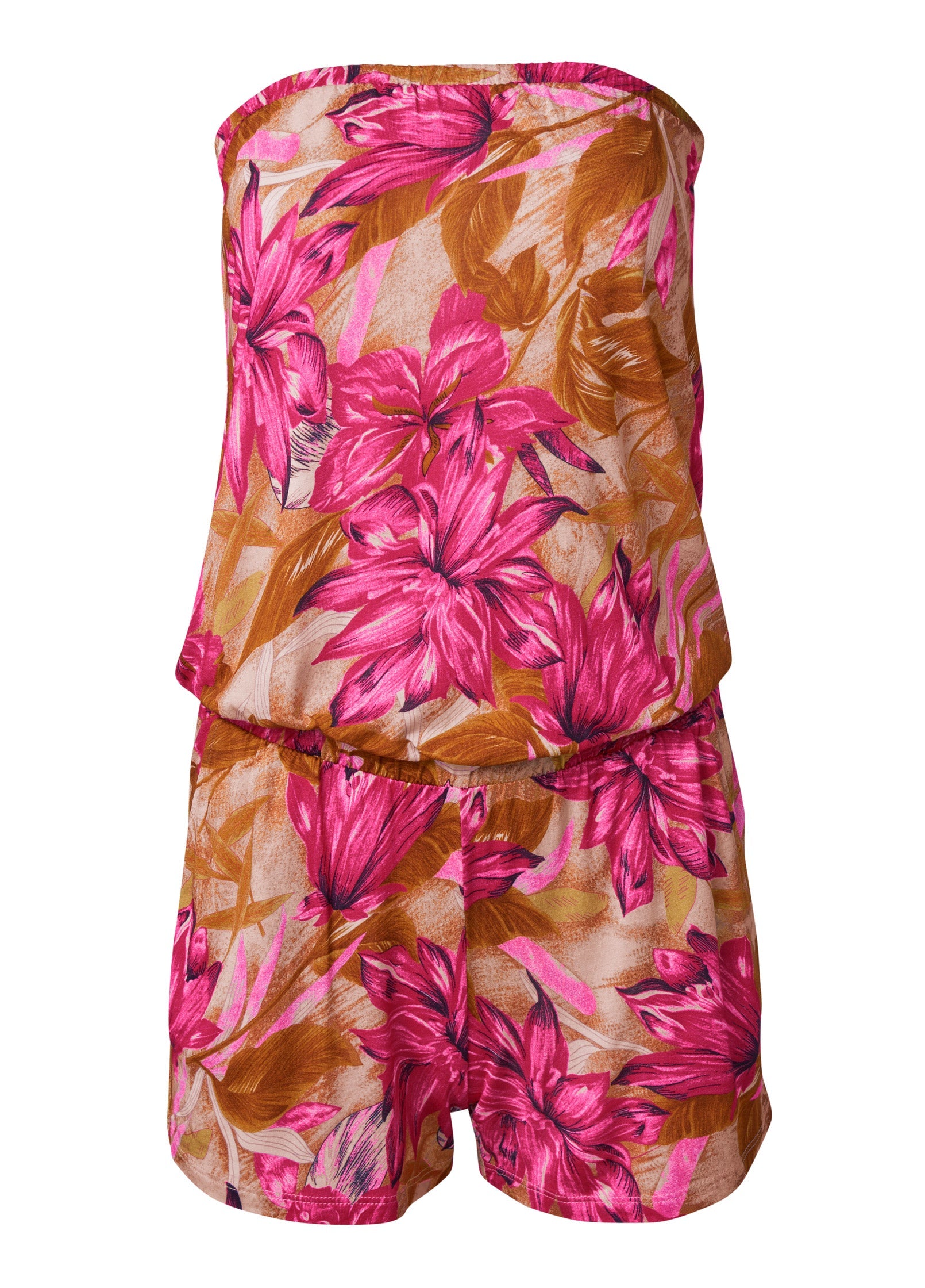 For sunny days and vacays, you can't go wrong with a romper! The shoulder-baring strapless neckline of this instant outfit makes the perfect partner for every warm-weather excursion. Elasticized at the waist for a cinched-in bodice, you'll love the way the easy silhouette defines your feminine shape.