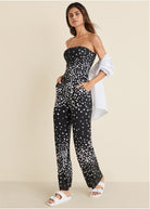 Strapless Printed Jumpsuit - Black & White