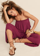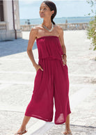 Easy, effortless and chic. In other words, everything you want a warm-weather outfit to be is exactly what this jumpsuit is. The airy fabric and breezy wide-leg fit is balanced by a smocked waist that gives it shape. Toss over your swimsuit or pair with sandals and you'll look stylish in one piece. * Sizes: XS (2), S (4-6), M (8-10), L (12-14), XL (16) * Strapless * Elastic neckline * Partially lined * Loose fit * Cropped, wide legs * Side slit pockets * By Lascana for VENUS * Fabric has minimal stretch * Viscose. Imported