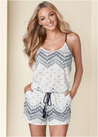 This casual and carefree romper is up for anything. All the ease of one-piece styling is yours thanks to the relaxed upper half and loose-fit shorts. But wait, there's more: the cinched-in waist adds just enough definition to make it flattering.