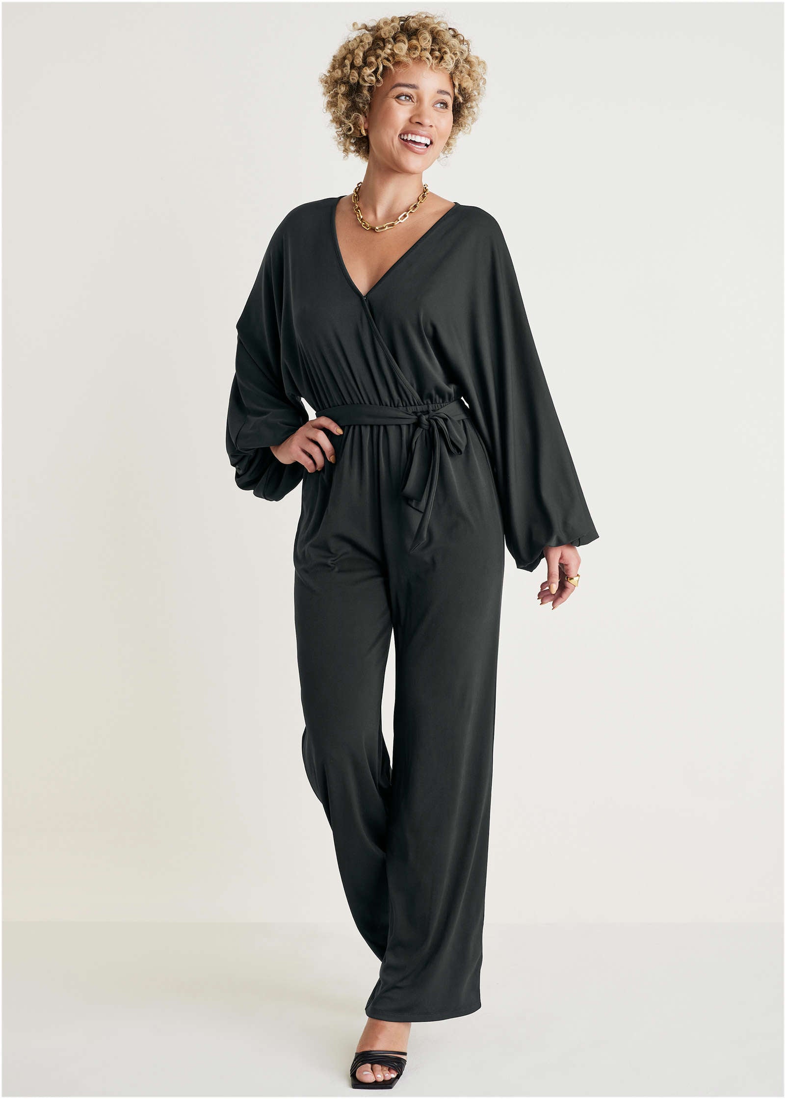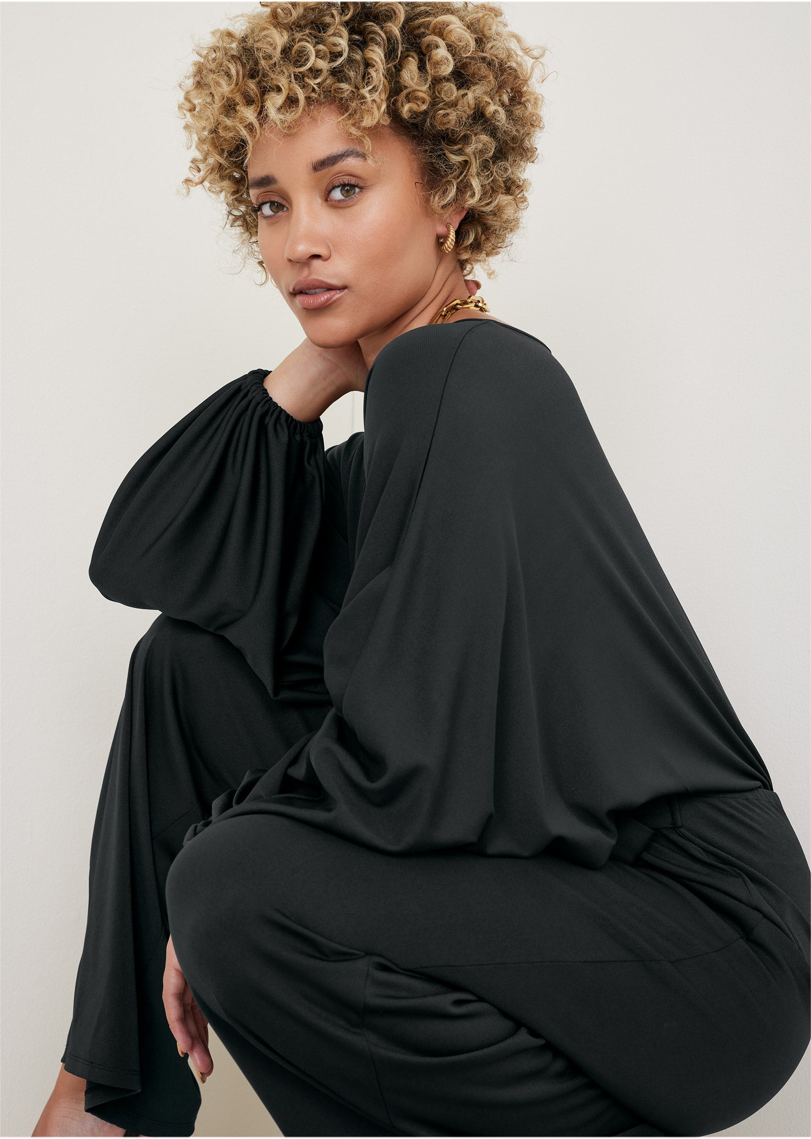 Volume Sleeve Detail Jumpsuit - Jet Black