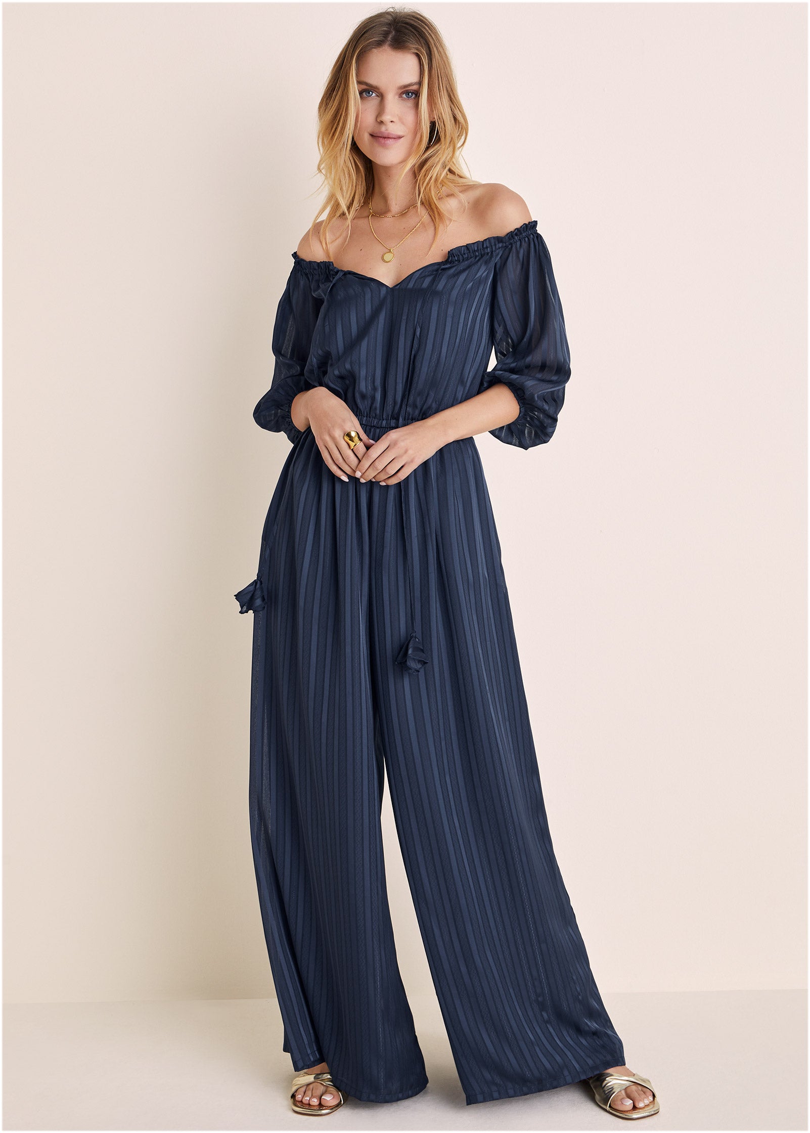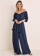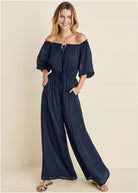 Off-The-Shoulder Jumpsuit - Navy