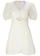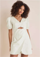 This puff-sleve poplin romper looks like a mini from the front, but built in shorts keep it flirty and playful! Featuring romantic puff sleeves, a sweet V-neckline, and a bold cutout, it’s bound to be the most eye-catching piece in your closet. The breezy poplin fabric keeps you cool, while the overlay detail on the bottom gives it a chic, polished finish.
