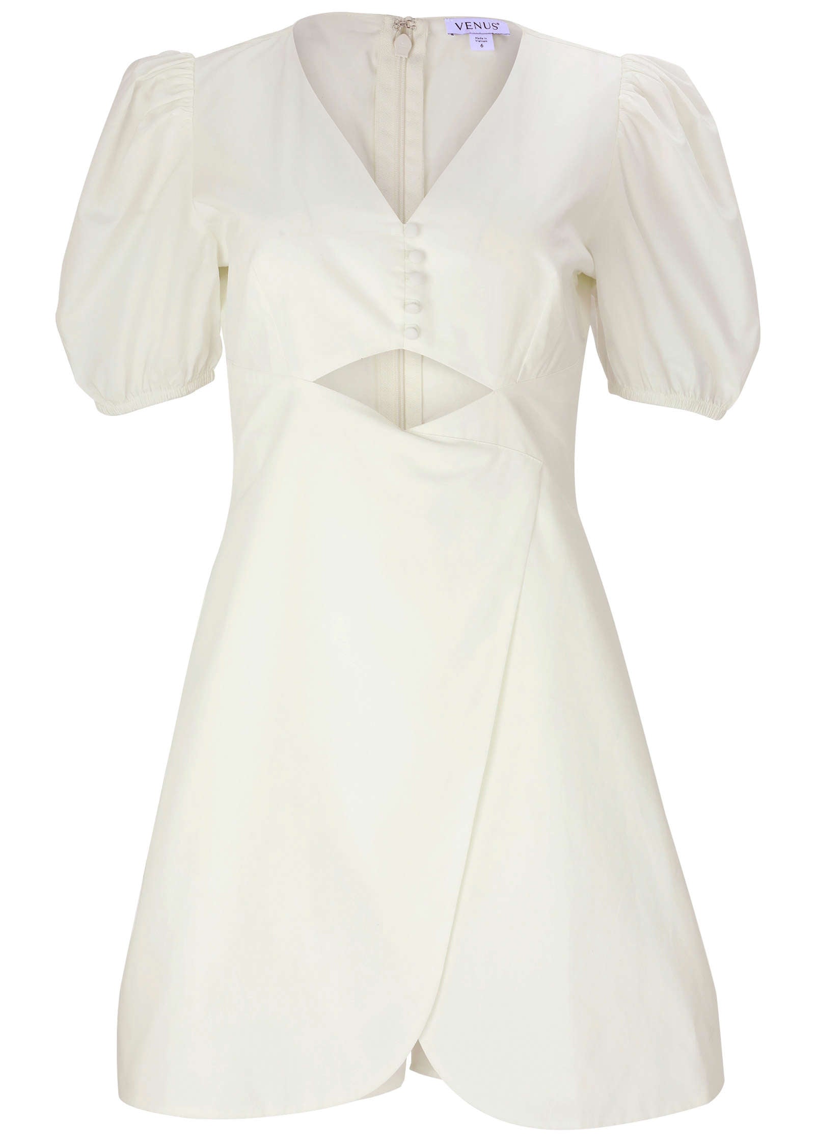 Puff-Sleeve Poplin Romper - Cloud Dancer