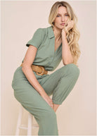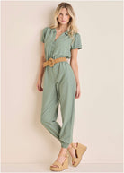 Casual, comfy, and oh-so-chic. This linen jogger jumpsuit brings together the best of style and comfort with its collared neckline, button-front design, and elastic waistband that cinches at the ankles. Perfect for a laid-back day of brunch or a casual outing, pair with wedges for an effortlessly chic look or sneakers for ultimate comfort.