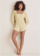 One piece, endless cozy vibes. This knit romper is soft, stylish, and made for lounging like you own the place. With a square neckline, subtly puffed shoulders, and relaxed sleeves fitted at the wrist, it’s the perfect balance of chic and comfy. The short silhouette keeps it flirty—just add slippers and let the lounging commence.