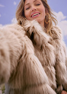 A faux-fur piece always elevates the look, but this jacket ups the ante with its voluminous silhouette and dimensional styling. Fully-lined for an added element of warmth, this winter-perfect jacket boasts extra fur at the neck, cuffs and hem and has hidden hook-and-eye closures for a clean, sleek look.