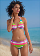 When it comes to revealing your confidence, the lift of this underwire halter bikini top, with an element of shine from the metallic stripes, has you covered! Enhance your shape with the adjustable halter and back ties, letting you customize the fit so it's perfect for every day in the sun.