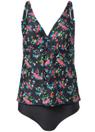 Matchmaking not required! This tankini set offers coverage with its long floaty bodice and sexiness with its V-neck, plus the added boost of an underwire. The pretty little bow at the front adds a sweet touch to this piece made for sunny days and beach vacays. * For printed items, placement may vary * Adjustable shoulder straps * V-neck * Molded cups with underwire * Tie detail at front * Included bottoms are mid rise with moderate rear coverage * Domestic or import of quality nylon/spandex tricot