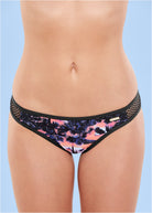 * Sport black athletic mesh at both sides and black trim for contrast * For printed items; placement may vary * Moderate rear coverage * Low rise * By Lascana for Venus * Domestic or import of quality nylon/spandex tricot