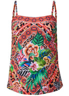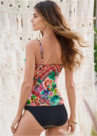 No need to fuss over mixing and matching your swimsuit. Just get the whole set! This classic tankini top comes with matching, moderate-coverage bottoms for a set that's ready for sun-soaked occasions. The bandeau neckline flatters and gives unique shape to the familiar tankini shape. * Detachable, adjustable shoulder straps * Shelf bra with soft foam shaping cups * Casual fitting tankini skirt * Includes moderate bottoms * Domestic or import of quality nylon/spandex tricot