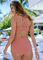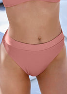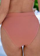Banded around the high waist, this ribbed pair of bikini bottoms has you swimming in instant style! Ribbing gives texture to this moderate coverage choice that's both sleek and comfortable, the perfect combo for water sports, beach games or poolside lounging.