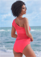 Asymmetrical Mesh One-Piece - Sunset Pink