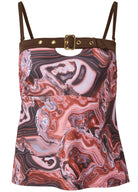 Keep it chic, sophisticated and unique at the same time with this sleek tankini top. This fitted style hits in a straight line above the bust, boasting a unique belt buckle detail for a dash of shine. Spaghetti straps come included, giving you the option of a minimalist bandeau look or classic over-the-shoulder style.
