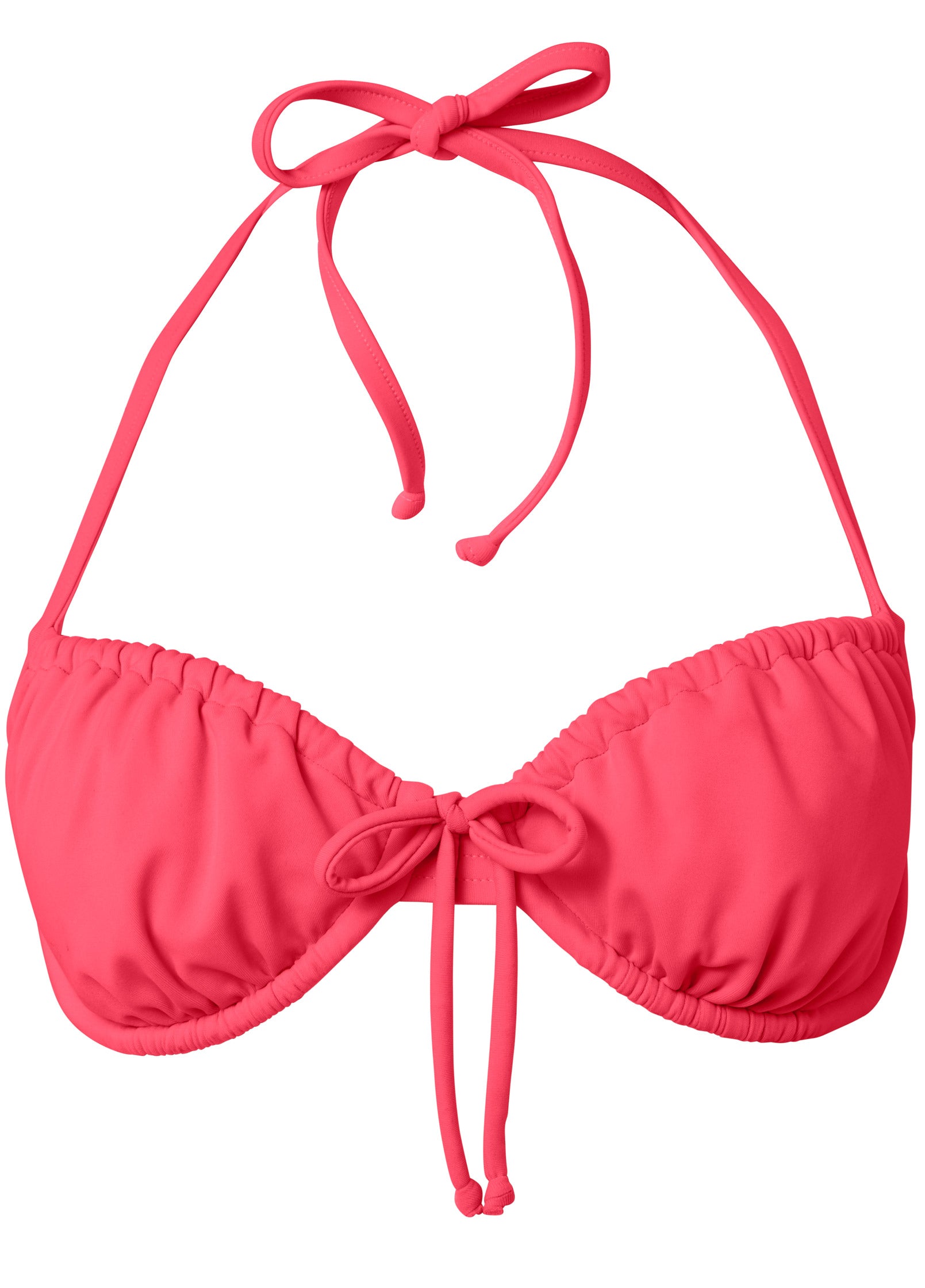 Inspired by classic French bra styling with an underwire for support and a tie detail at the front, this alluring bikini top, with its subtle gathers around the cups, brings a trendy touch to your swim collection. Secure the halter tie behind your neck for hours of day-in-the-sun fun! * Halter tie closure * Demi cups * Underwire support * Adjustable slider strap at back * Tie detail at front * This style is made of recycled fabric. For more information, see MORE DETAILS * Domestic or import of quality recycled nylon/spandex tricot