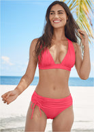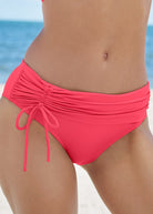 Hey beach babe, these bottoms are for you! With an adjustable tie at the hip that creates gathers in the fabric overlay, you'll enjoy the curvy silhouette and a made-for-you fit that sits a little higher on the hips. So get set to soak up the sun in your new favorite swim pick!